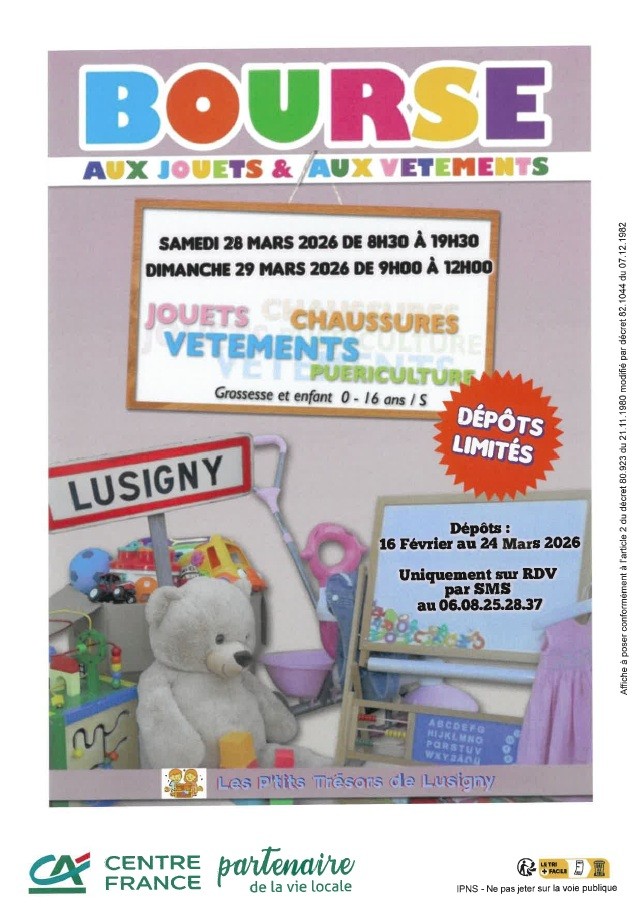 Bourse aux jouets & aux vêtements organisée par Les P'tits Trésors de LUSIGNY