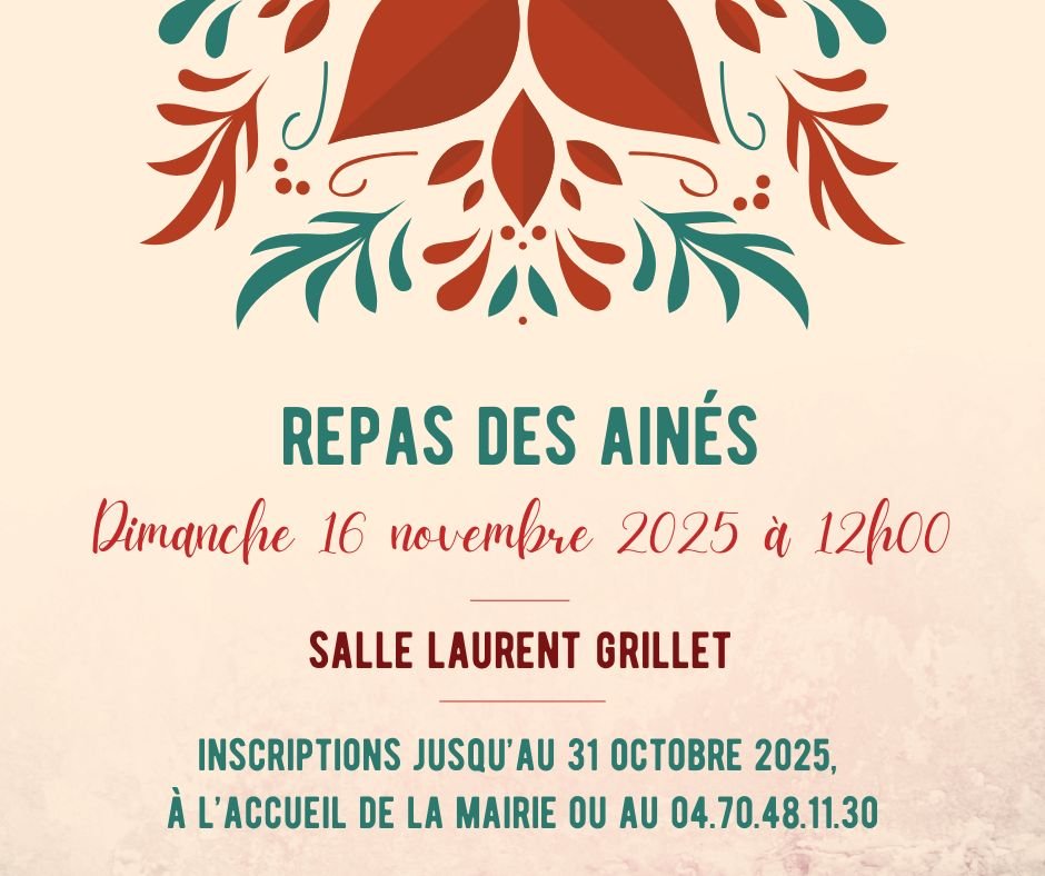 đ« Pour les conjoints et/ou ami(e)s agĂ©(e)s de moins de 73 ans et dĂ©sirant participer Ă ce repas, le tarif sera de 30âŹ.